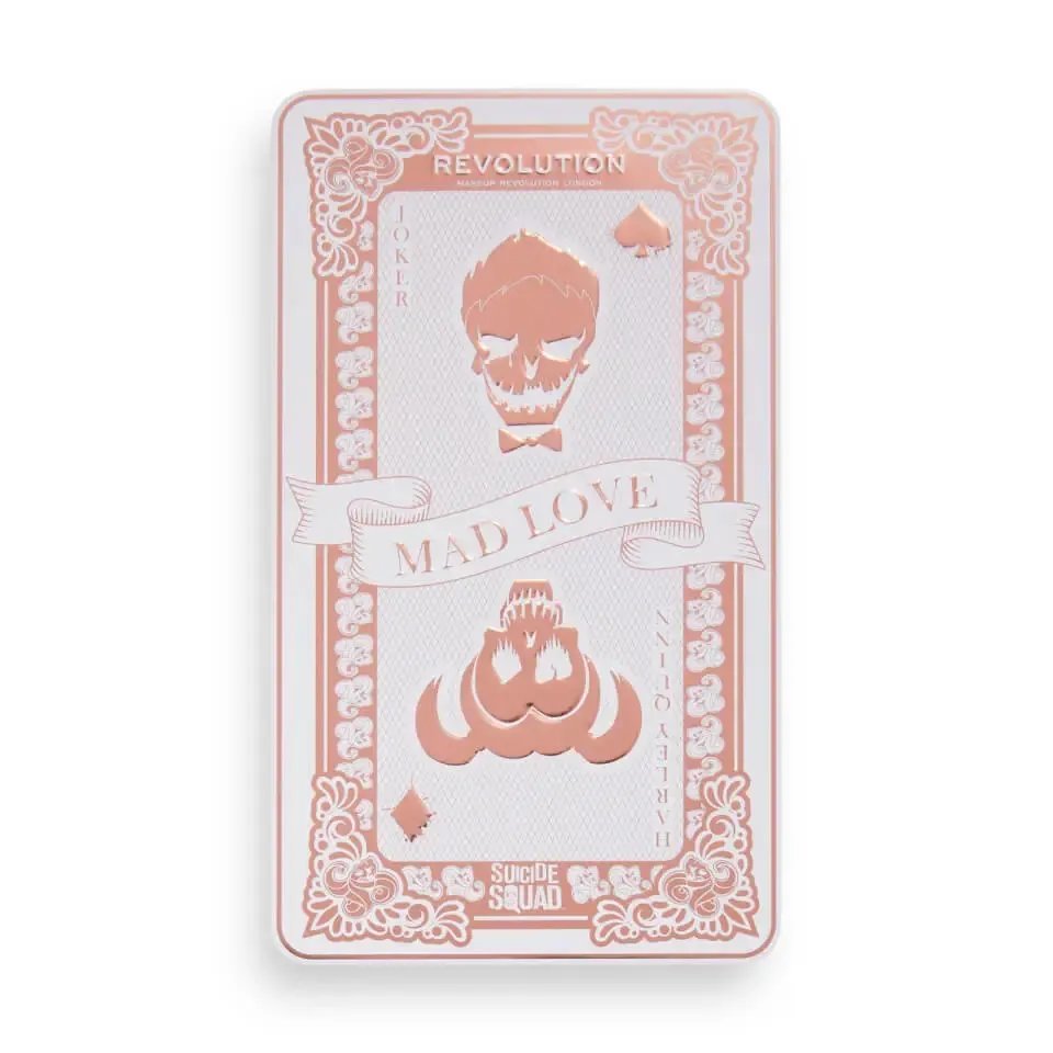 “Discover your inner Loveable Rogue with the DC X Revolution Mad Love Forever Flawless Shadow Palette. This palette features 18 irresistible shades of mattes, shimmers and pressed glitters, that will make you fall head over heels, including shades ‘DATE NIGHT’, ‘MR J’ and ‘HELLO BEAUTIFUL’. This tin palette features a gorgeous, pink, playing card design including The Joker and Harley Quinn and select shades are embossed with love hearts. This makes the perfect Valentine’s Day gift for the DC fan in your life.”
