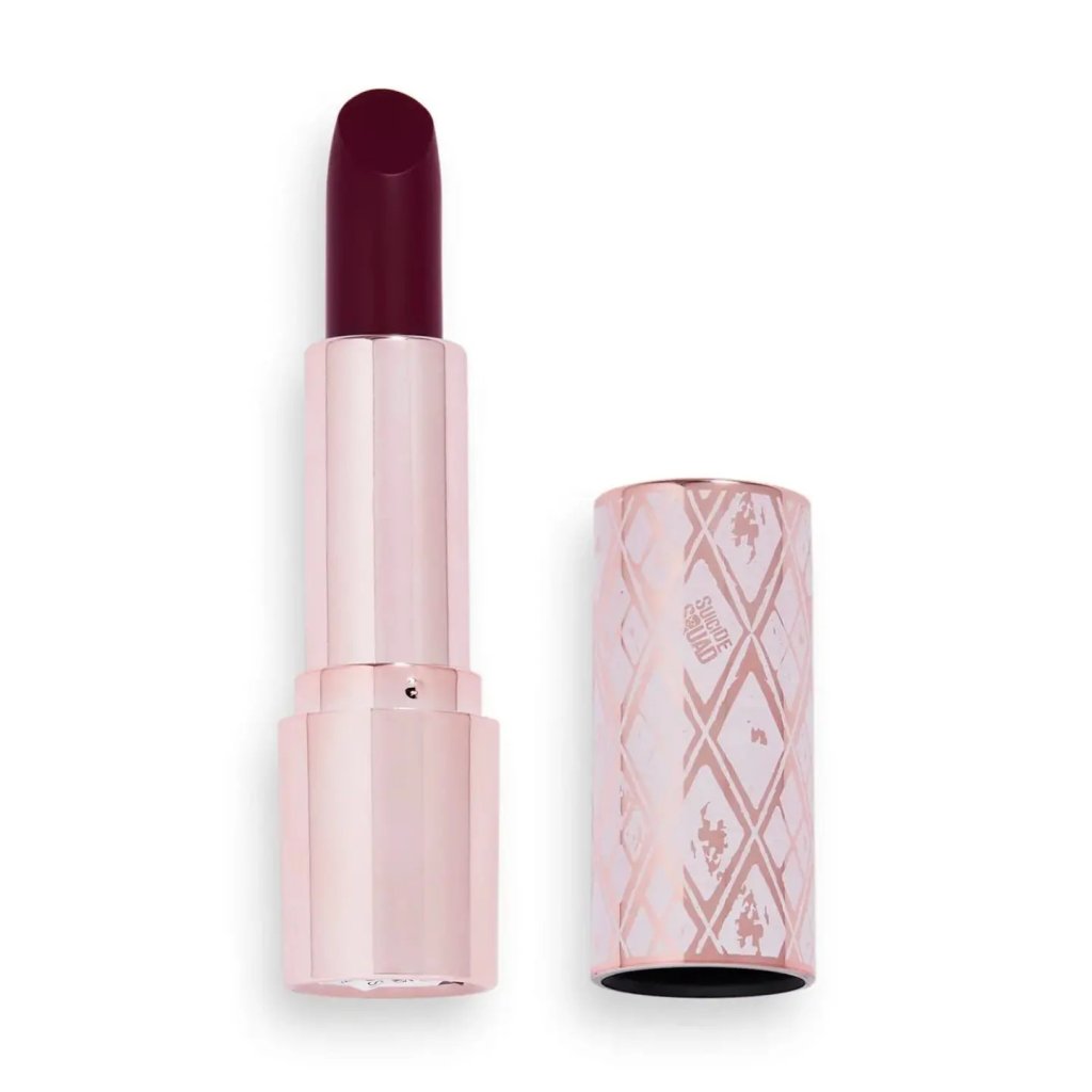 “Discover your inner Loveable Rogue with the DC X Revolution Mad Love Lipstick in beautiful rose gold printed packaging. This irresistible, creamy formula comes in a muted red matte-finish lipstick for the perfect kissable pout. A MUST for date night or a Harley Quinn makeup look! This makes the perfect Valentine’s Day gift for the DC fan in your life.”