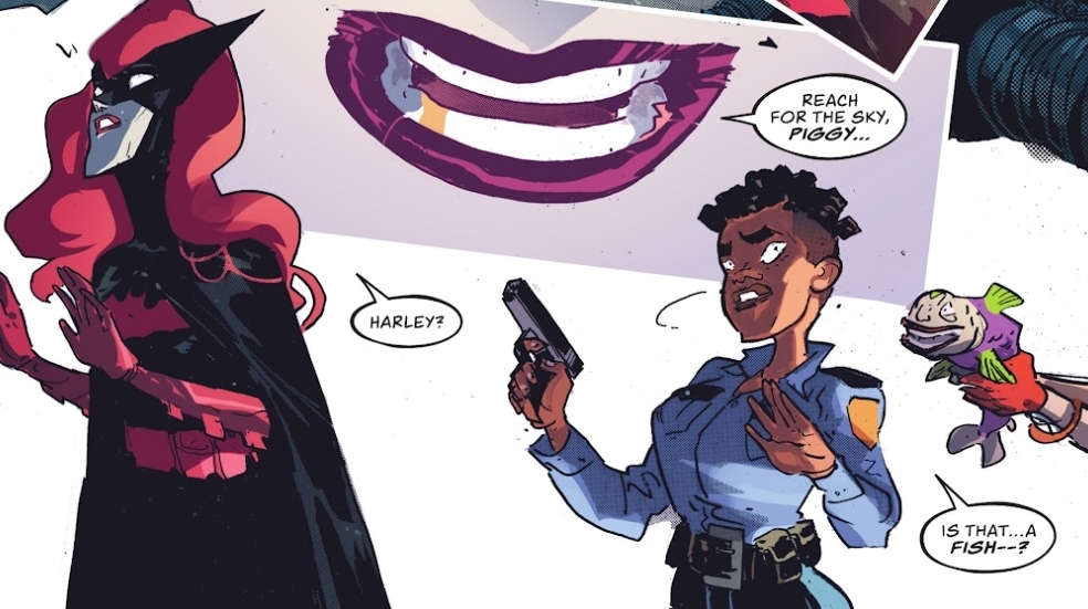 Phillips holds the leader board of peak character development constantly feeding us new information about how Harley ticks, it is masterful, relatable and darn right juicy! There’s even a call back to her beloved hyenas which I hope we see again one day, so close this time but maybe they will be arriving soon. Or maybe Harley simply wanted to go and visit the zoo? Overall, Phillips has a strong understanding of Harley’s persona and never fails to build onto that. I must credit how much attention she pays to Harley’s development as well as giving us great stories.