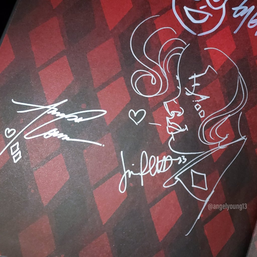 Jimmy was even kind enough to do a sketch in my Art of Harley Quinn book while Amanda was signing: