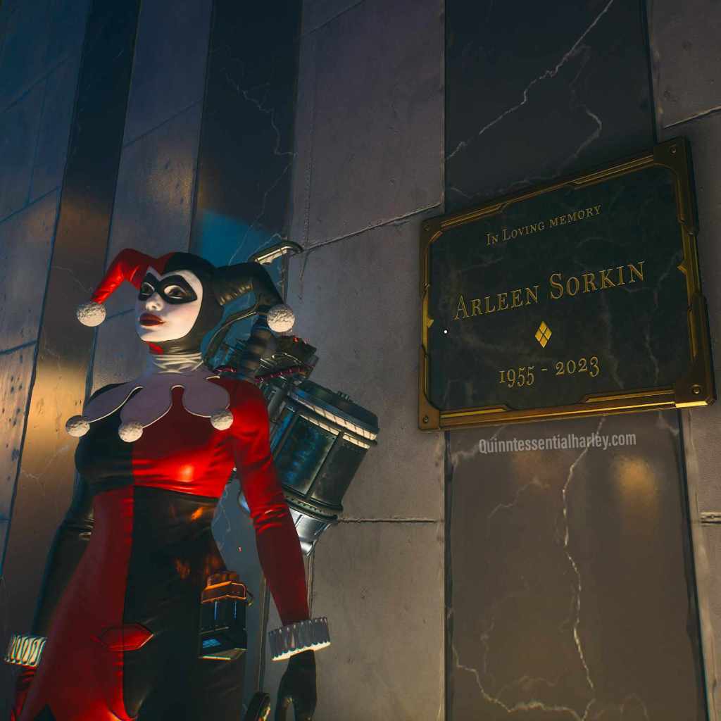 Within the Hall of Justice in Suicide Squad: Kill the Justice League, there is a tribute on the wall in memory of the original Harley Quinn – Arleen Sorkin. Also in the room, to the right of Arleen, is a tribute to Kevin Conroy – our beloved Batman. His final performance as the Bat was Suicide Squad: Kill the Justice League.