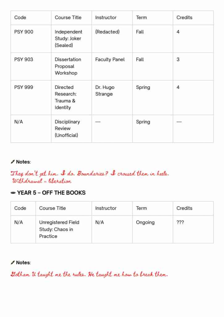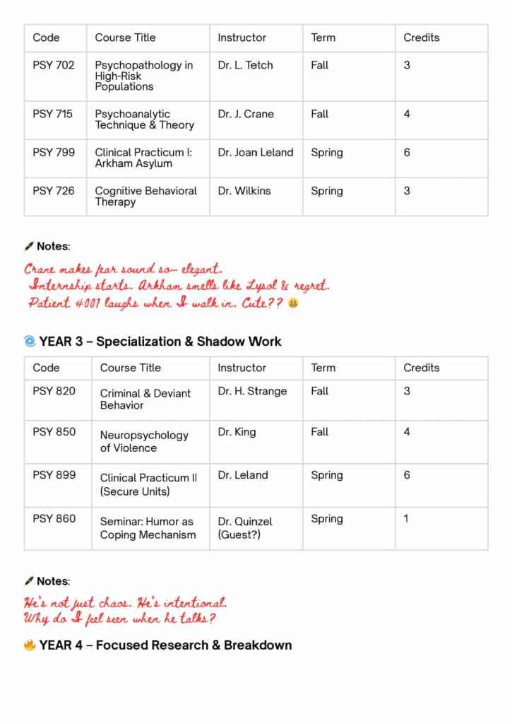 Note: This is just a fun little project for fans. Harleen is obviously fictional, as is this syllabus, university, etc.